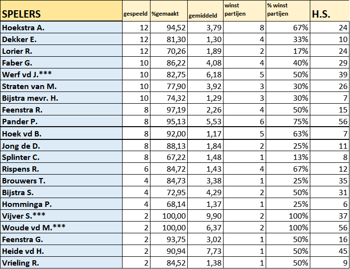 Gespeelde wedstrijden.
