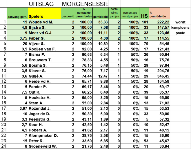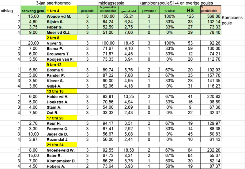 ALLE UITSLAGEN VAN SNERTTOERNOOI 2026, MORGENSESSIE EN MIDDAG SESSIE
